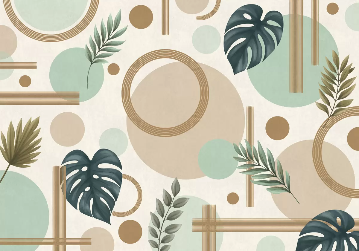 Fotobehang Geometrisch patroon met bladeren in groene kleuren N° w05018v1