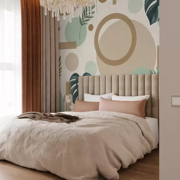 Fotobehang Geometrisch patroon met bladeren in groene kleuren N° w05018v1