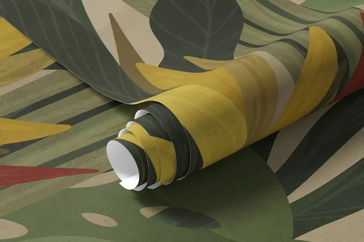 Fotobehang Tropisch gebladerte met grote bladeren en bloemen N° w05019