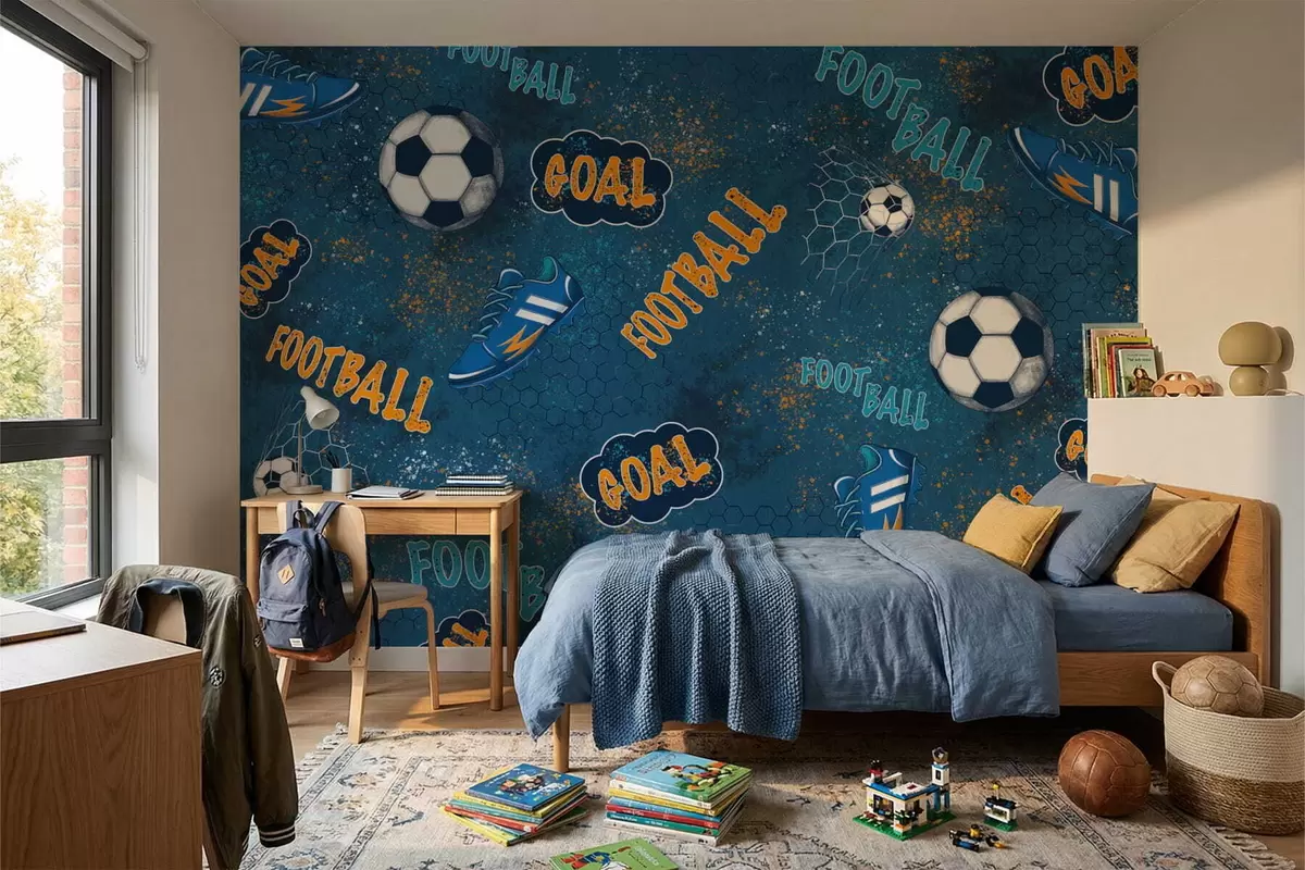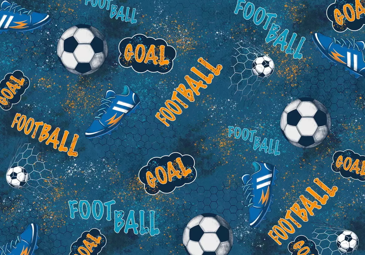 Fotobehang Kinderpatroon met ballen, schoenen en sportieve woorden N° w05037