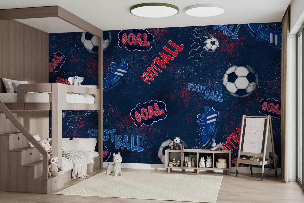 Fotobehang Herhalend patroon met ballen, schoenplaatjes en tekstelementen N° w05037v2
