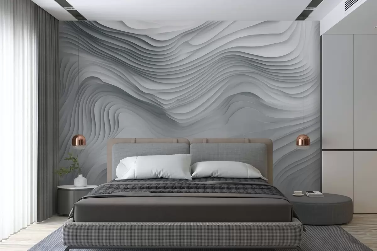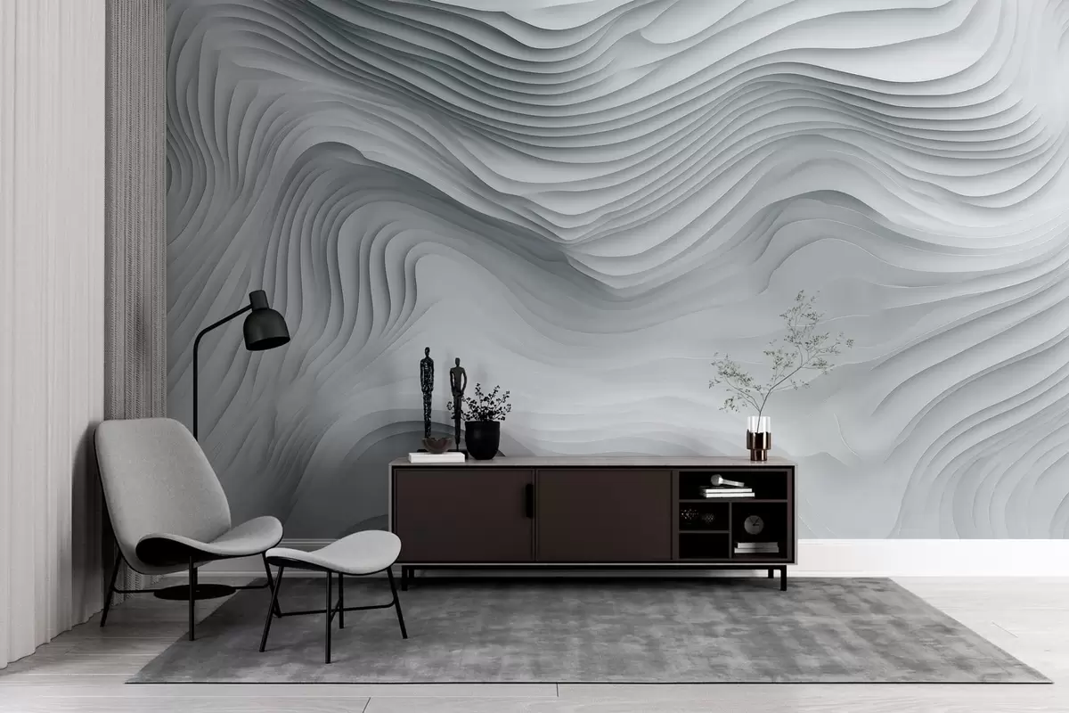 Fotobehang imitatie van volumineuze getrapte reliëfs in grijstinten N° w05061