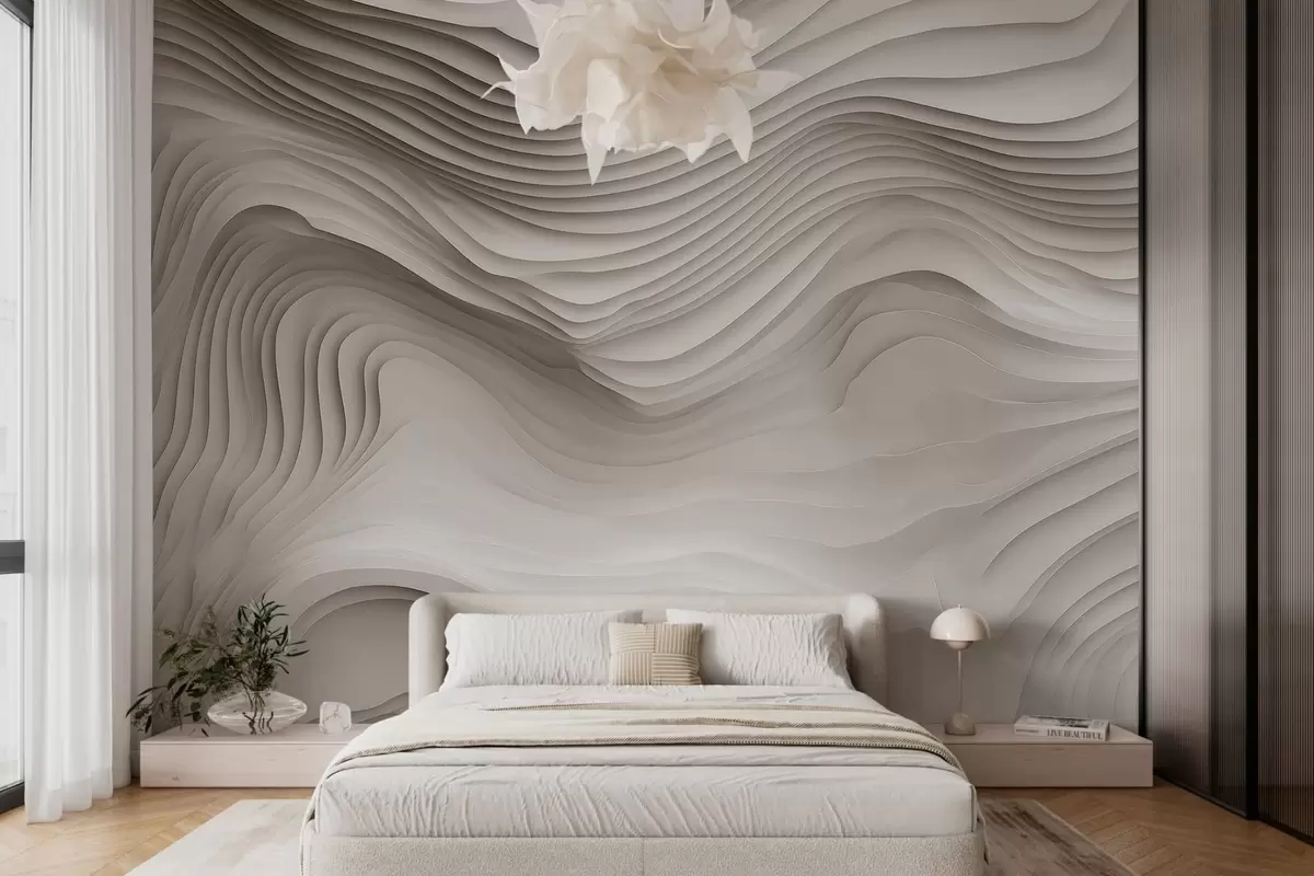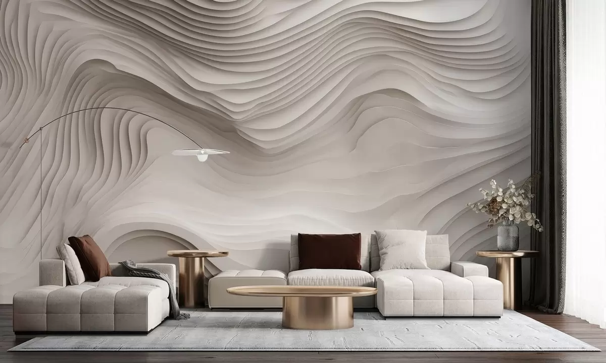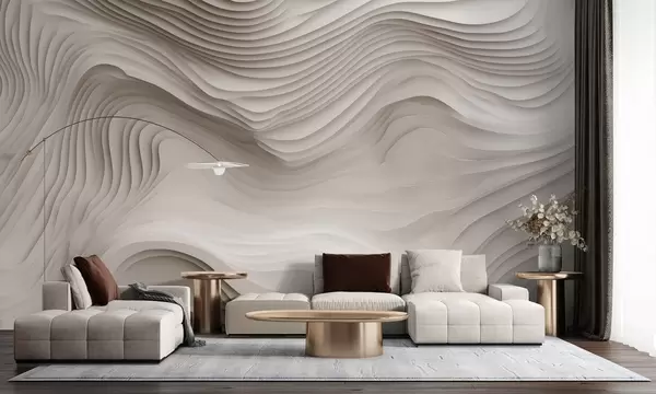 Fotobehang imitatie van volumineuze getrapte reliëfs in beigetinten N° w05061v1
