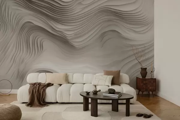 Fotobehang imitatie van volumineuze getrapte reliëfs in beigetinten N° w05061v1