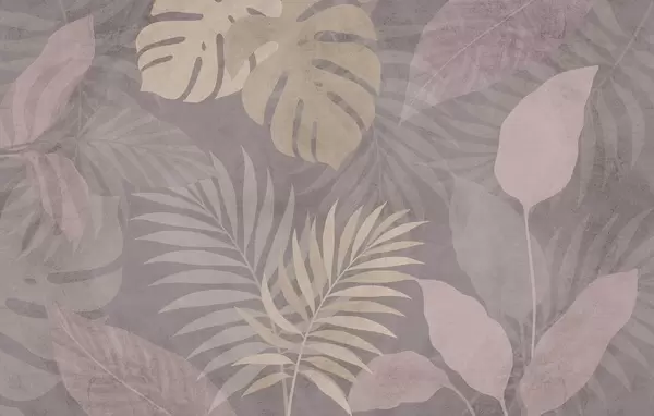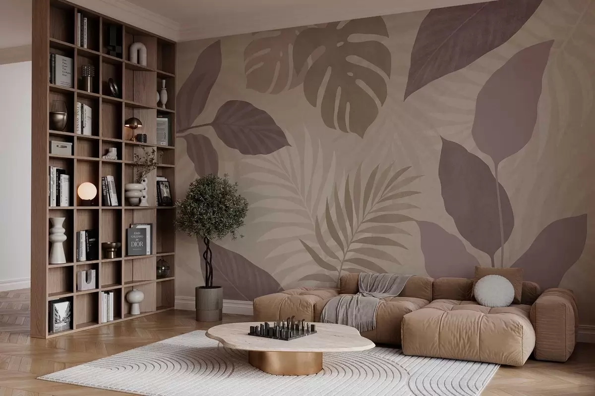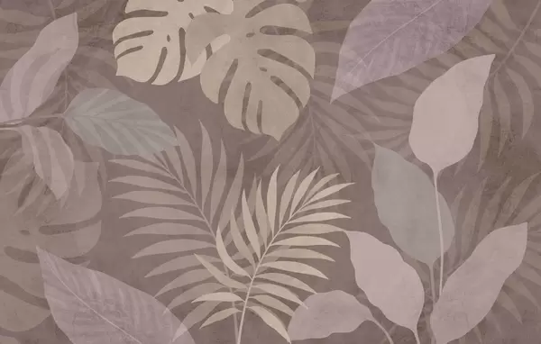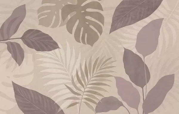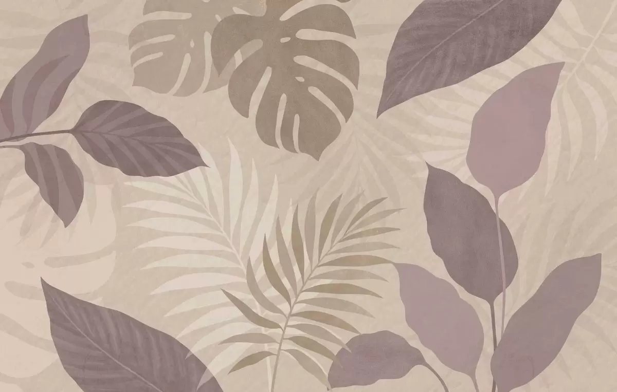Fotobehang gestructureerde tropische bladeren op een zandkleurige achtergrond N° w05063
