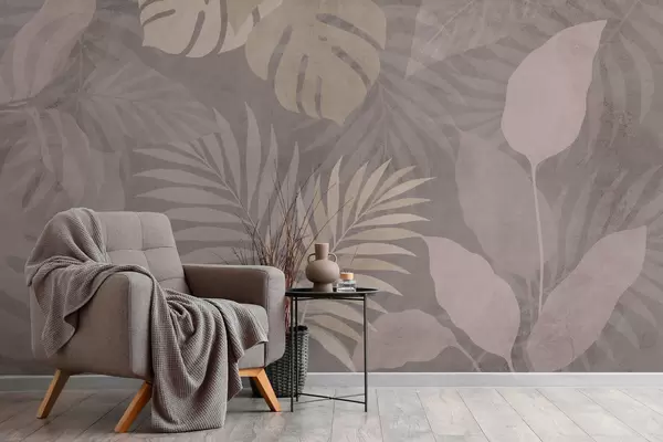 Fotobehang gestructureerde tropische bladeren op een grijze achtergrond N° w05063v1