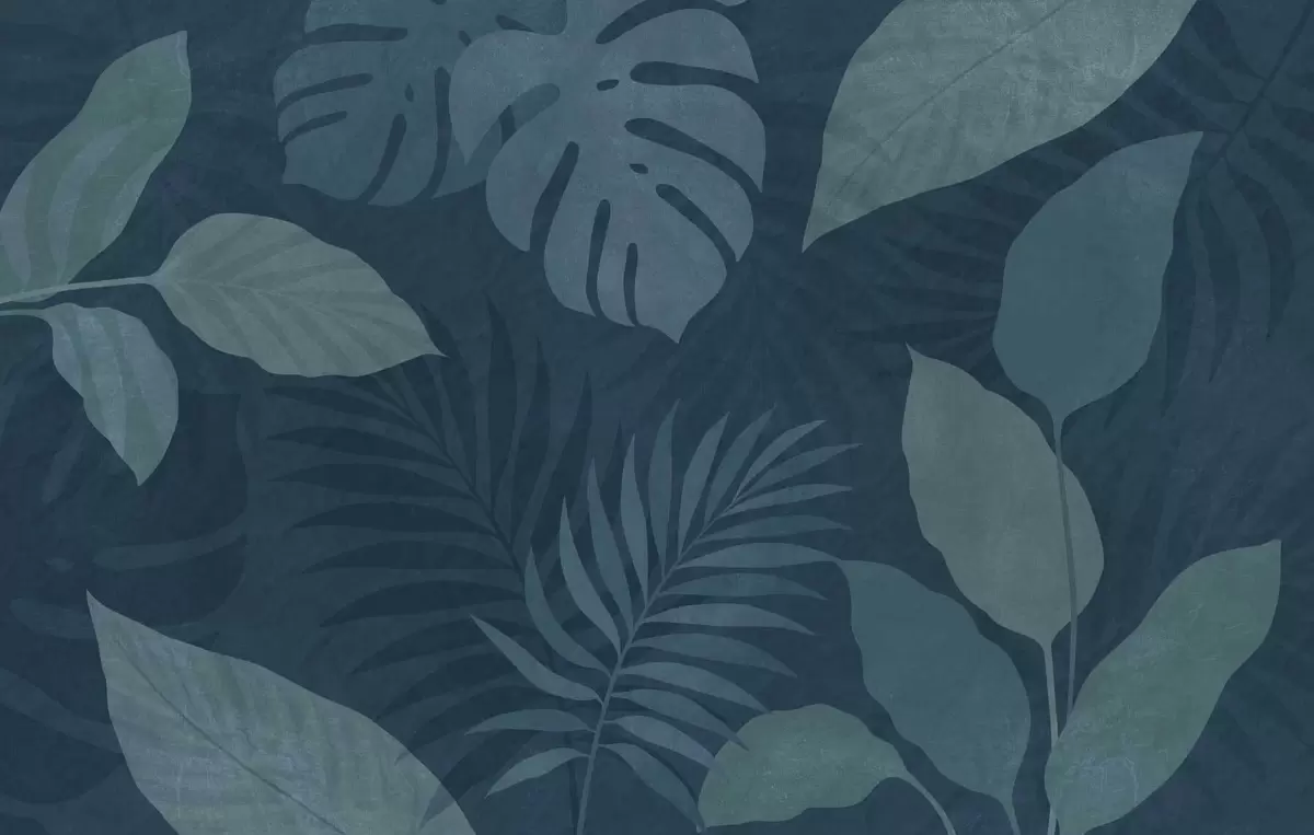 Fotobehang gestructureerde tropische bladeren op een donkerblauwe achtergrond N° w05063v3