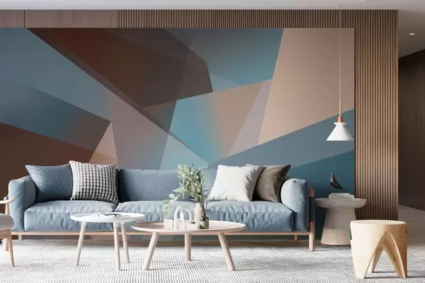 Fotobehang abstracte geometrie in blauwe en bruine tinten N° w05064