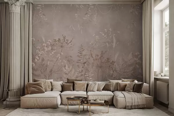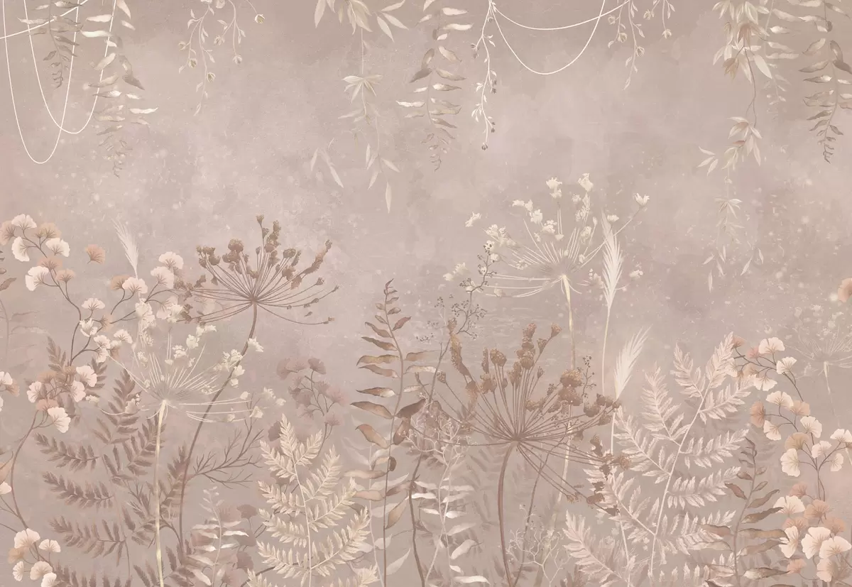 Fotobehang Zacht beige botanisch patroon met wilde bloemen N° w05092v2
