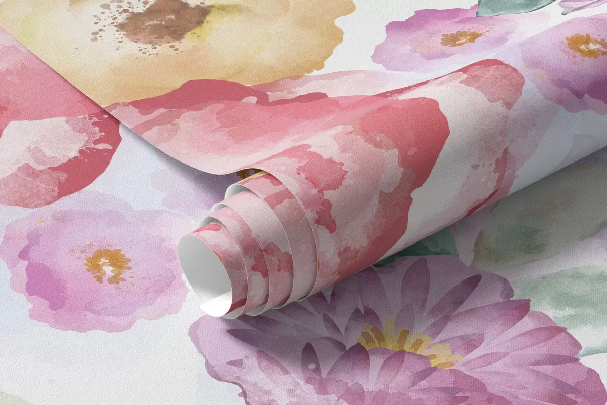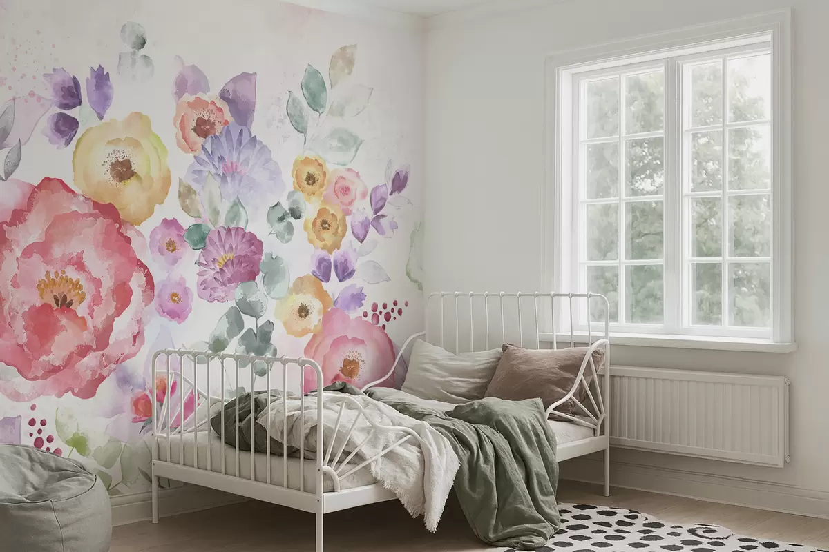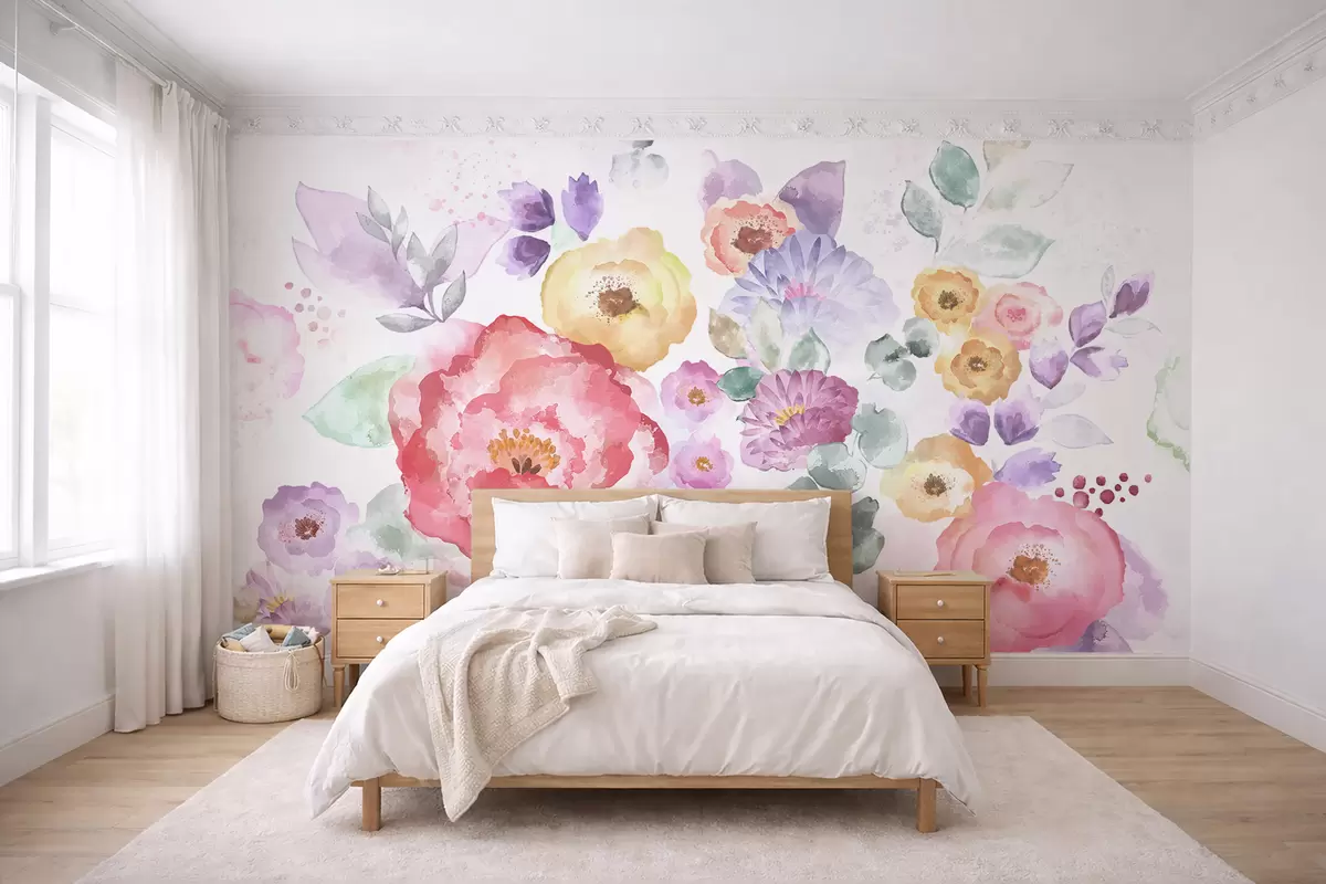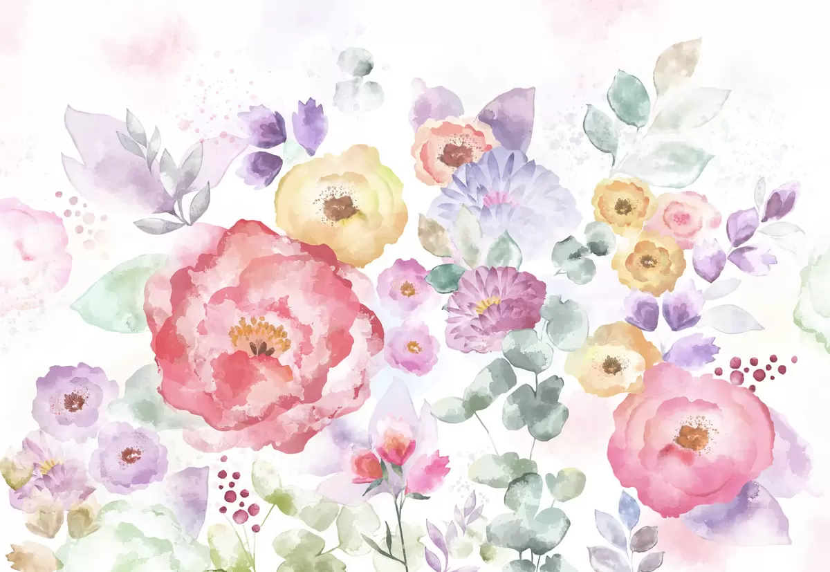 Fotobehang Pastelkleurige aquarelbloemen op een lichte achtergrond N° w05093v1