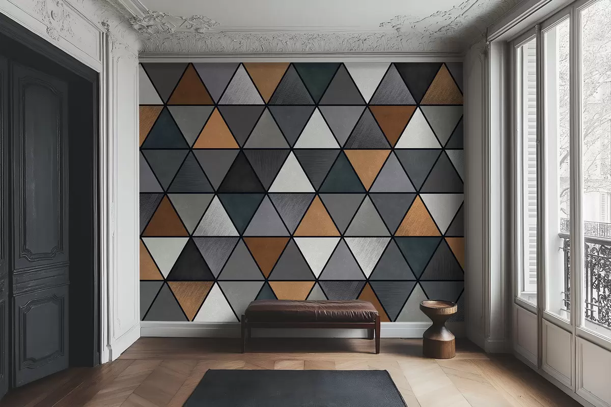 Fotobehang Driehoekspatroon met grijze en warme tinten N° w05095v1