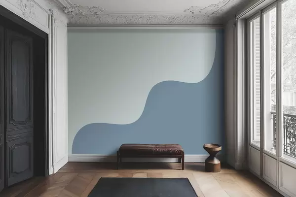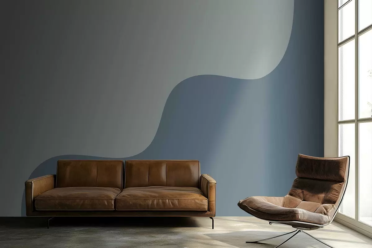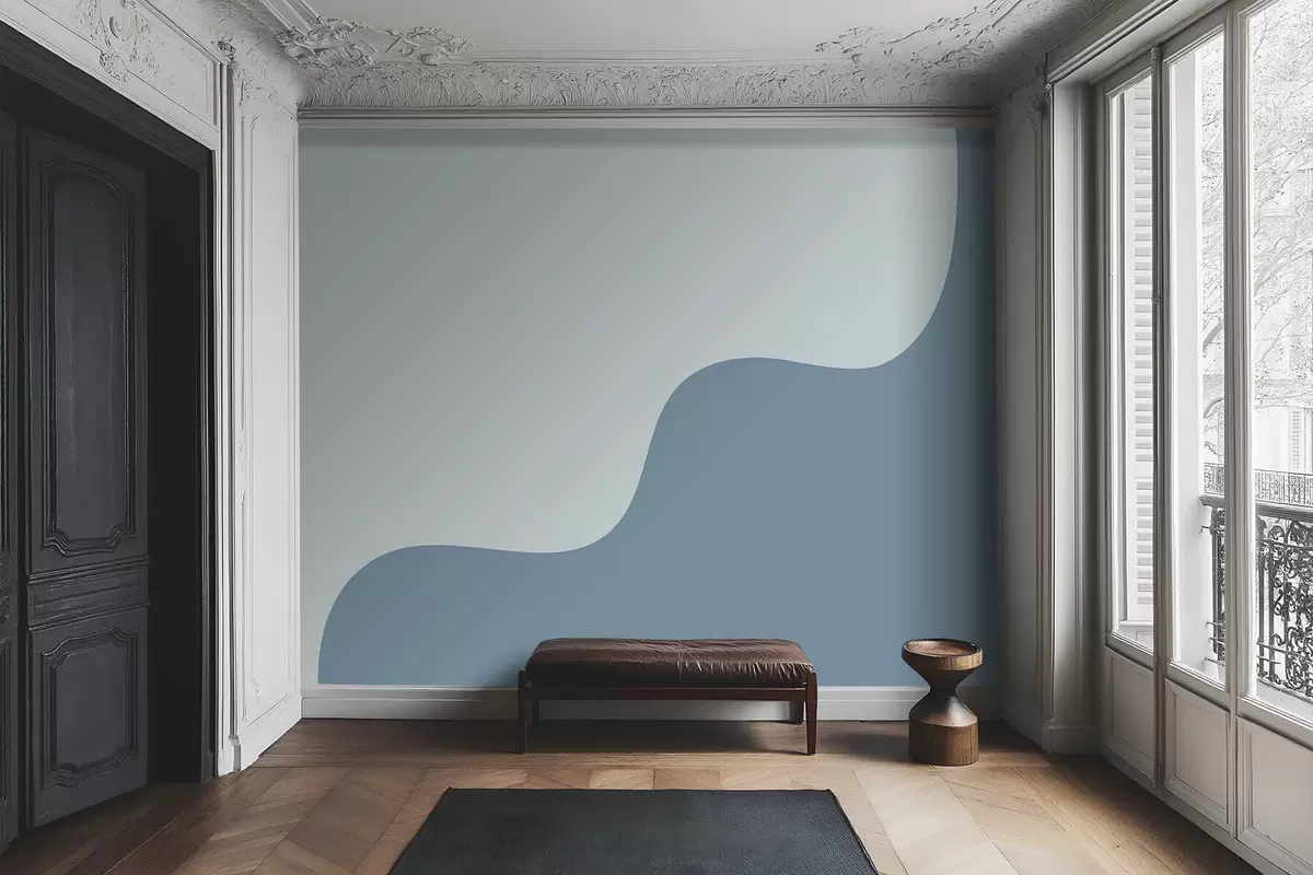 Fotobehang Vloeiende abstracte vormen in lichtblauwe en blauwe tinten N° w05097v1