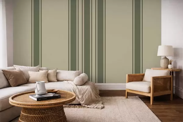 Fotobehang Verticale strepen in een ingetogen groen- en beige palet N° w05098