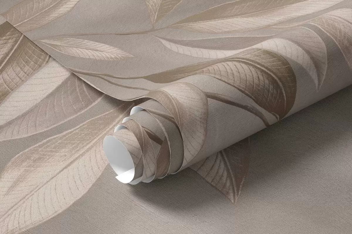 Fotobehang Elegante bladrijke takken in beige tinten op een lichte achtergrond N° w05113
