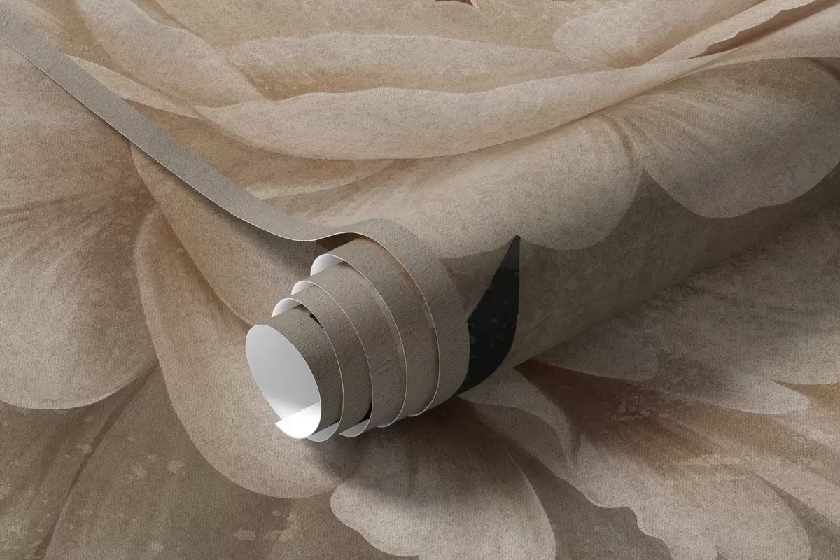 Fotobehang Volumineuze bloemen in beige tinten op een donkere achtergrond N° w05114