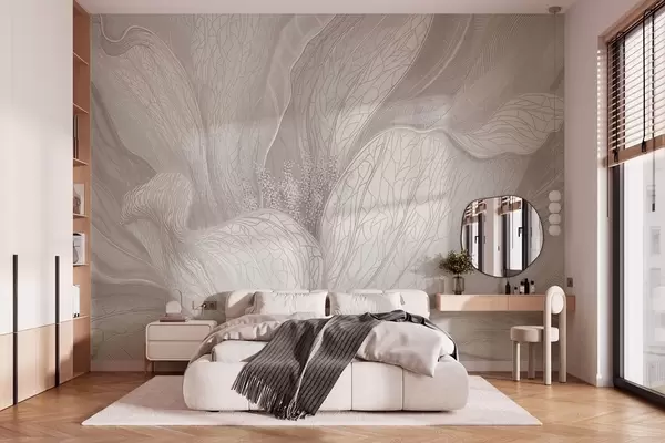 Fotobehang Lichte, abstracte bloem met vloeiende lijnen N° w05119v3