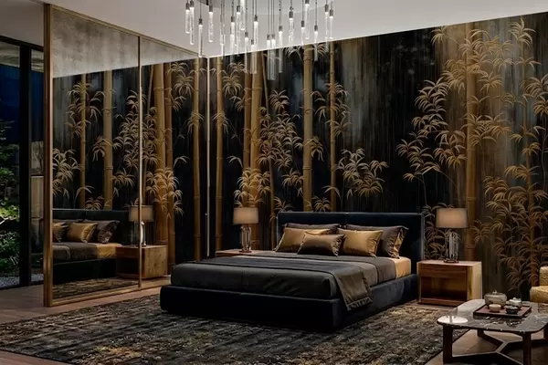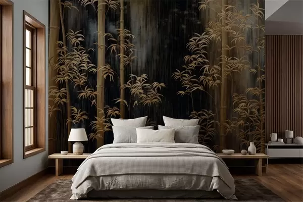 Fotobehang Donkere bamboe op een zwarte achtergrond N° w05120