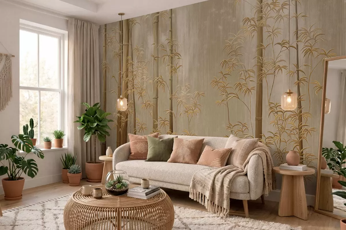 Fotobehang Beige bamboe met dunne stengels N° w05120v2