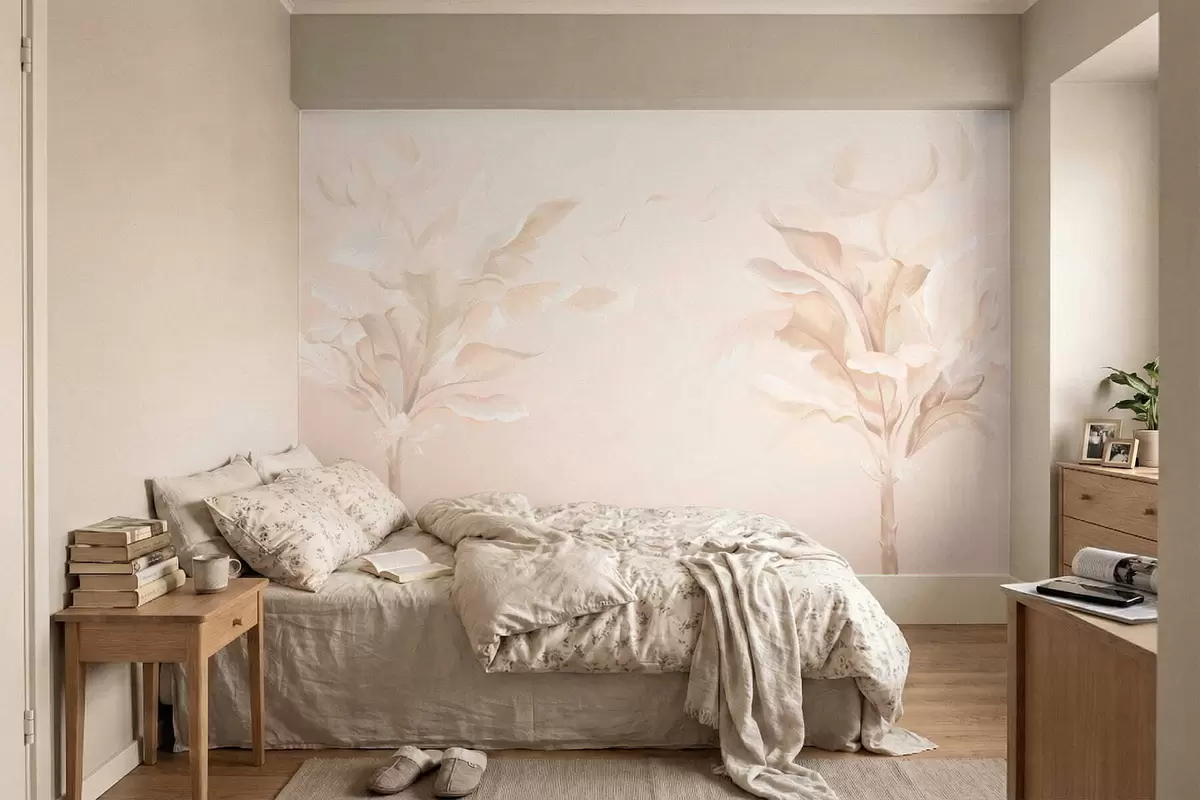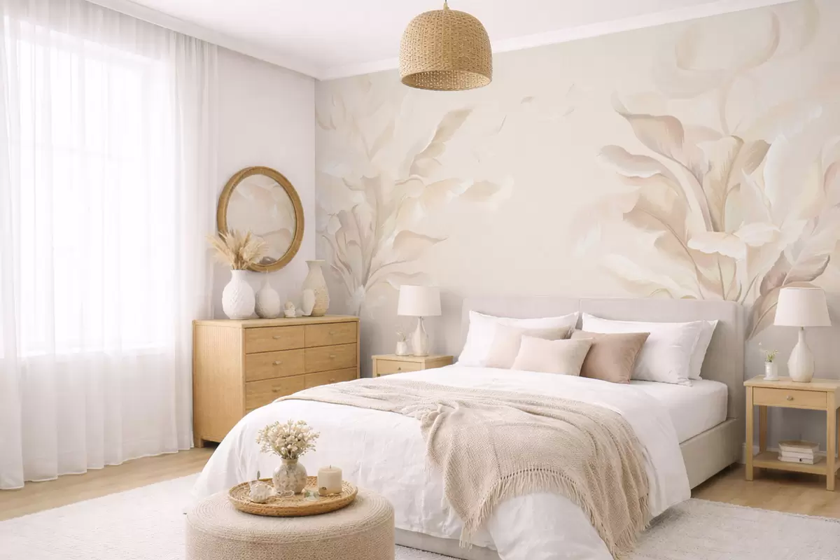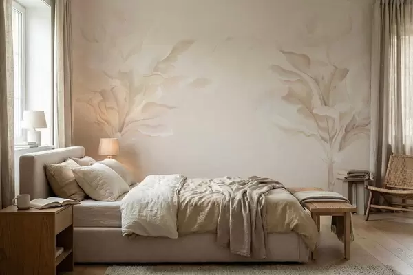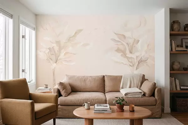 Fotobehang Luchtige decoratieve planten in warme crèmekleurige tinten N° w05126