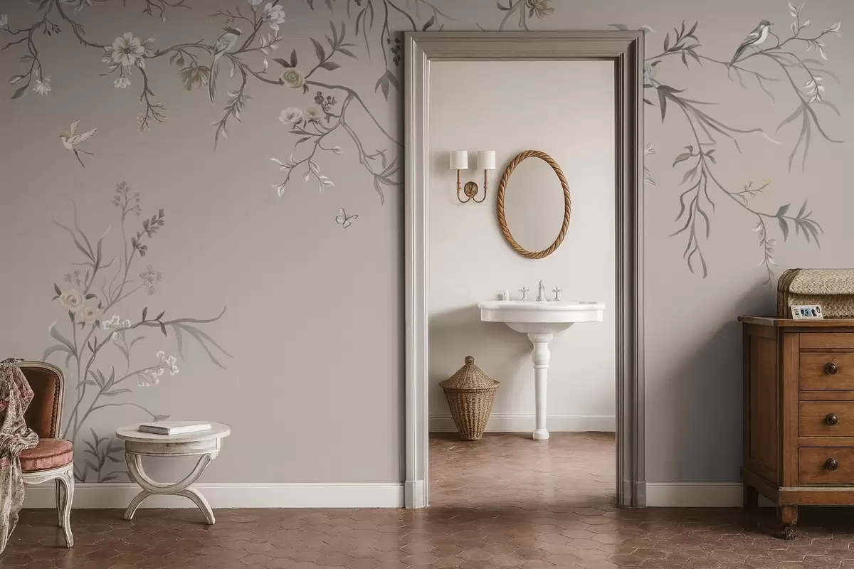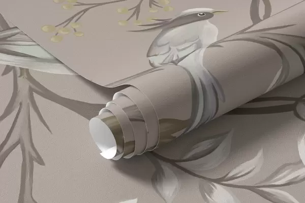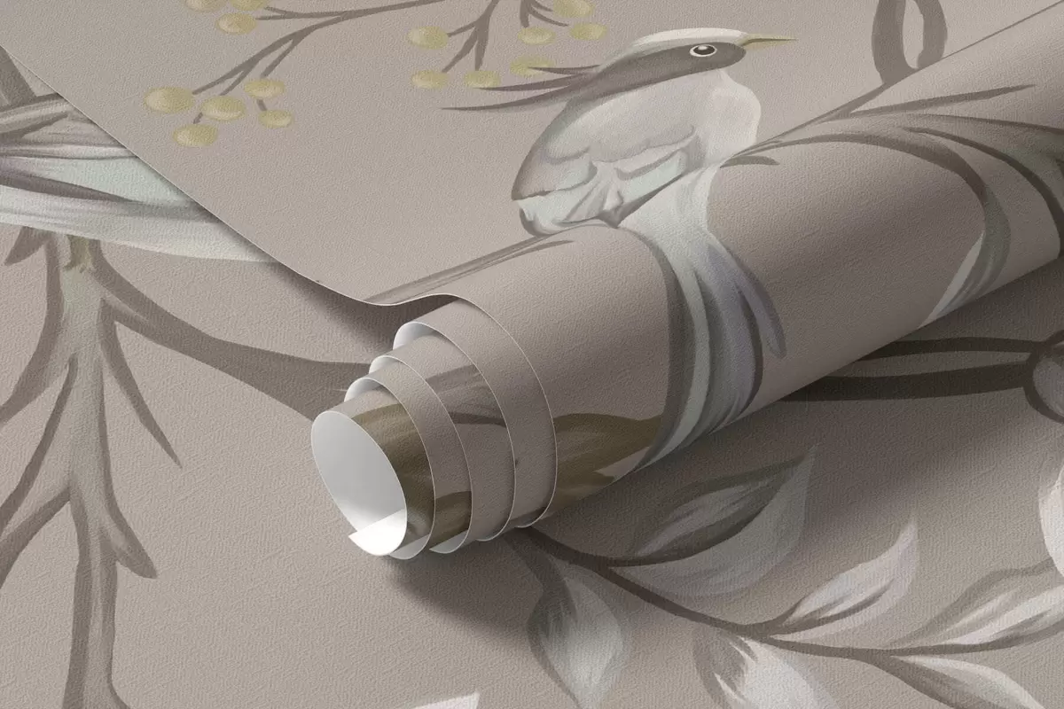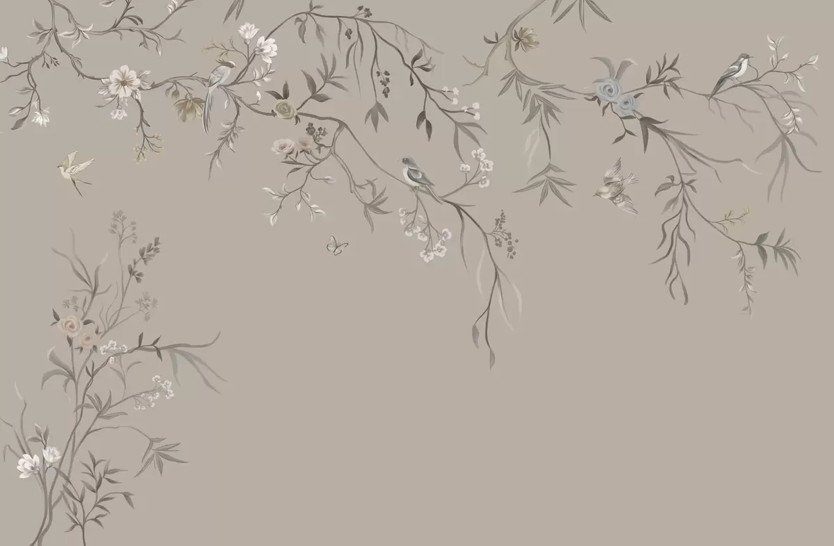 Fotobehang Bloemenornament met vogels op neutrale achtergrond N° w05127v3