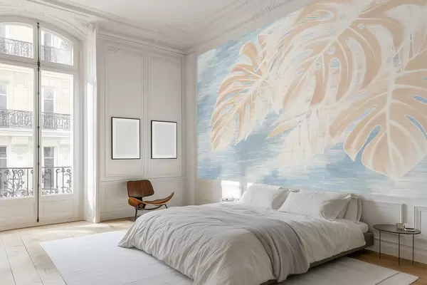 Fotobehang Abstracte bladeren in warme beigetinten op een lichte achtergrond N° w05130