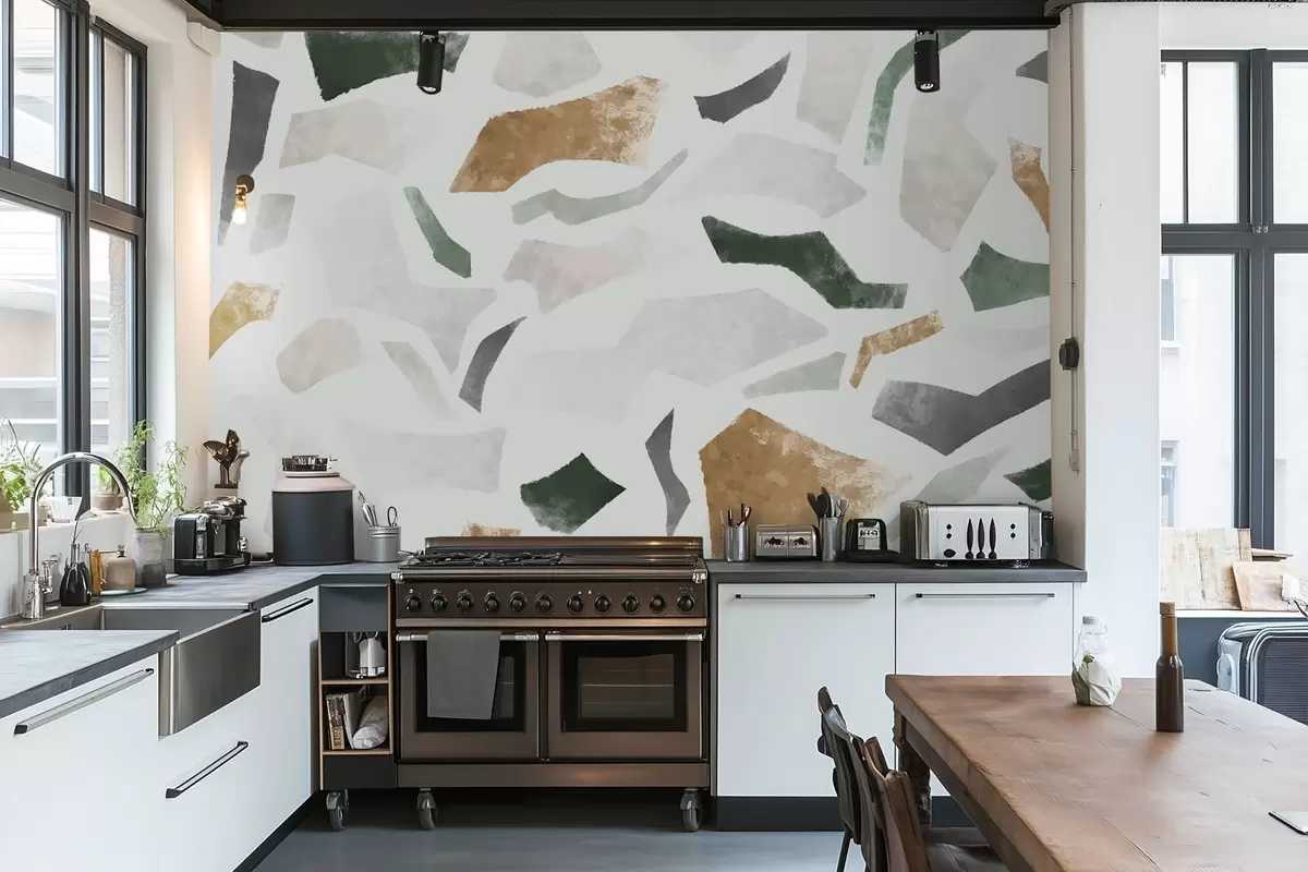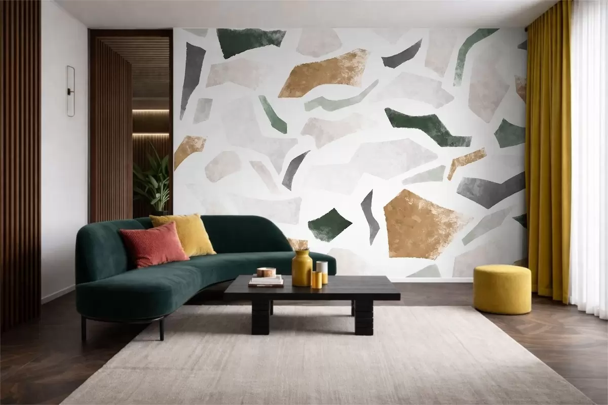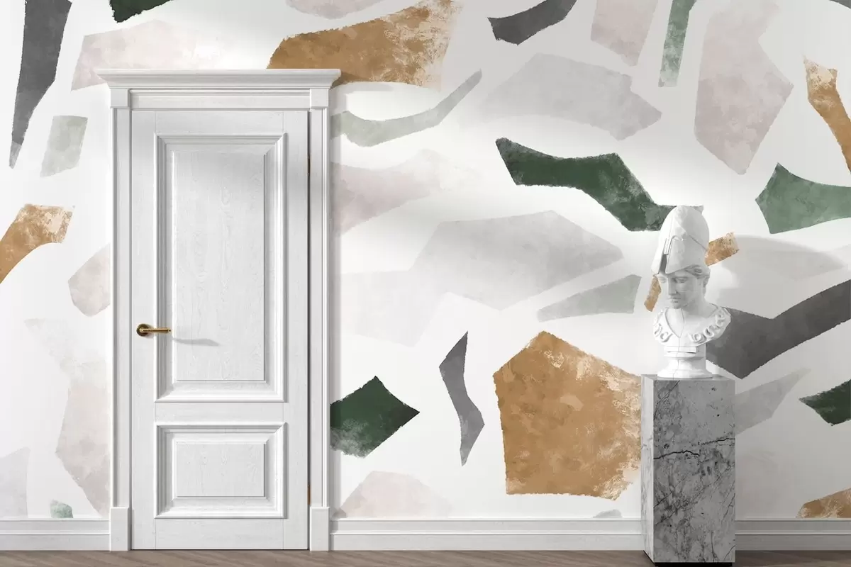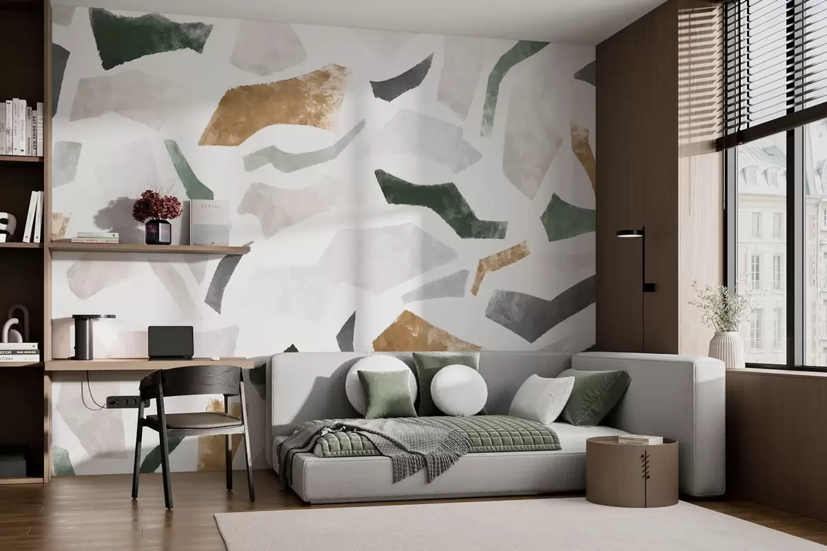 Fotobehang Fragmenten met een abstracte structuur in groene en beige tinten N° w05146