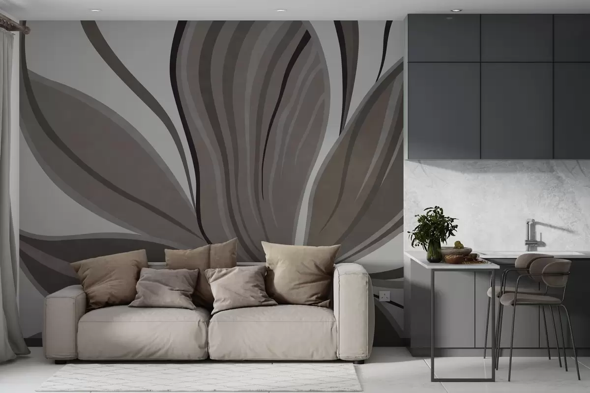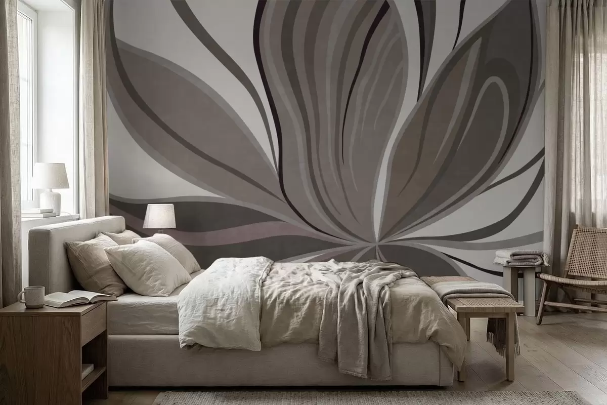 Fotobehang Abstracte bloem met zachte lijnen in grijs-beige tinten N° w05147v1