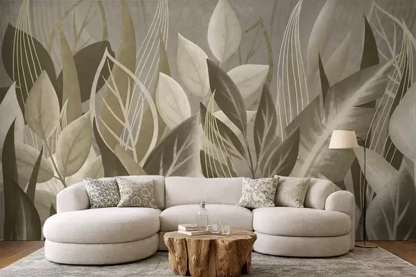 Fotobehang Abstracte bladeren in beige en groene tinten N° w05148