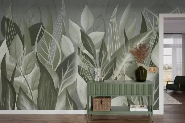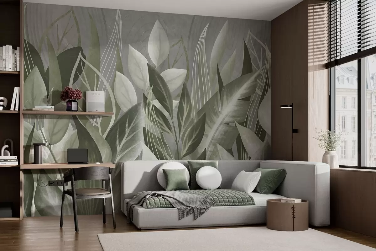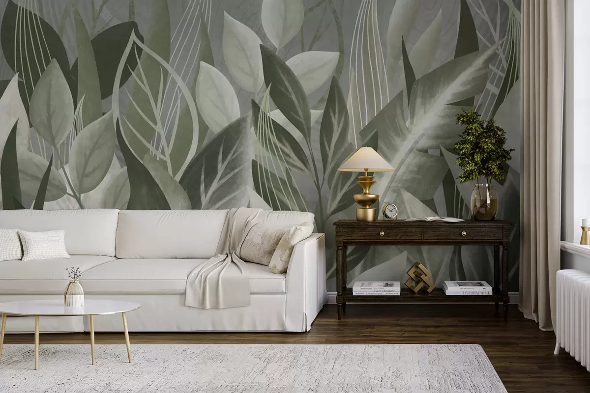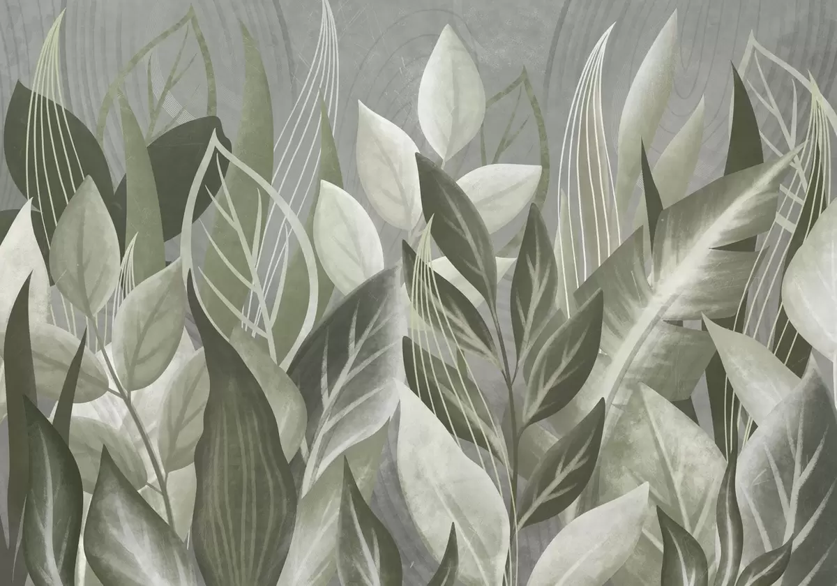 Fotobehang Abstracte bladeren in grijsgroene tinten N° w05148v1