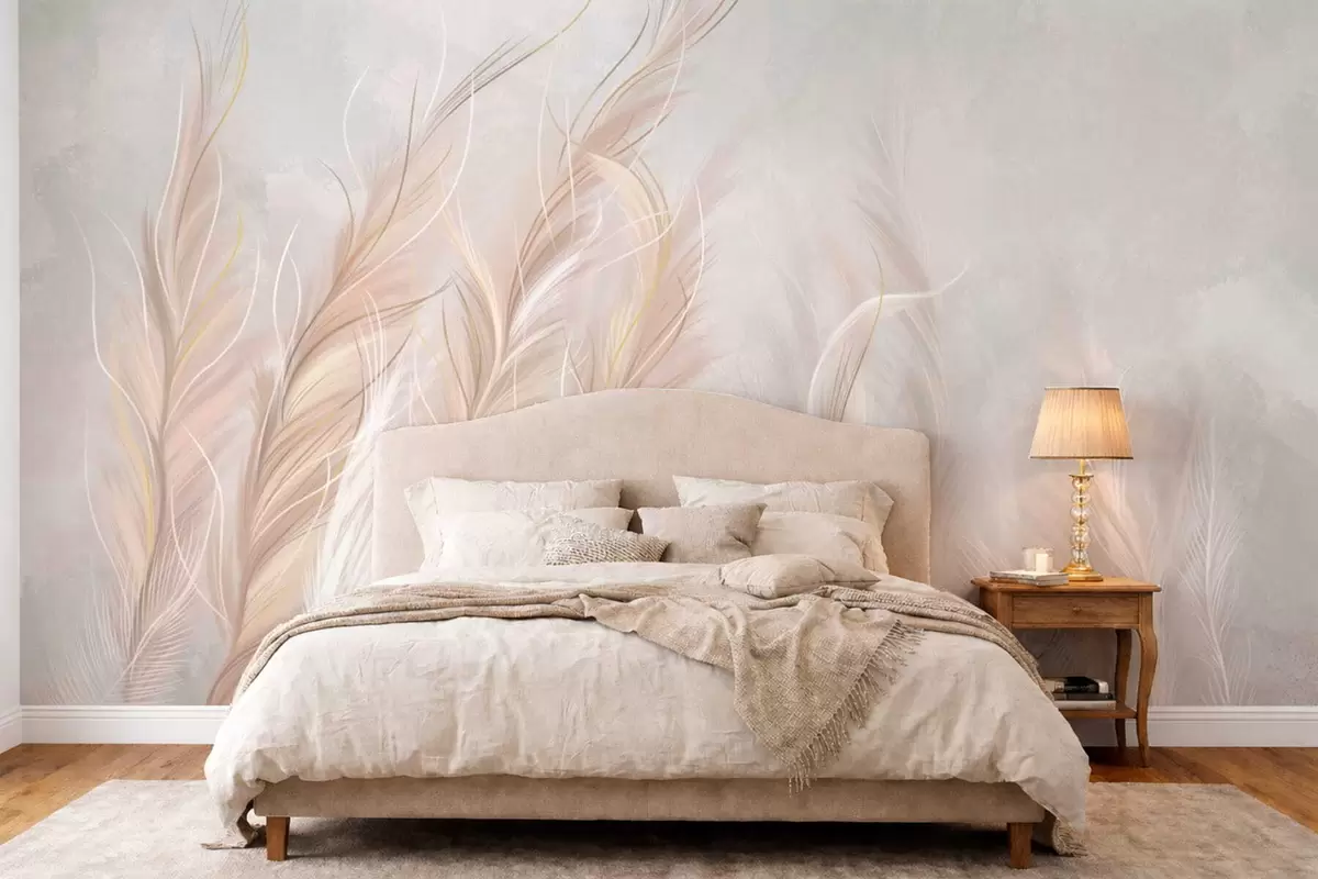 Fotobehang Zachte abstracte veren in lichte neutrale tinten N° w05153