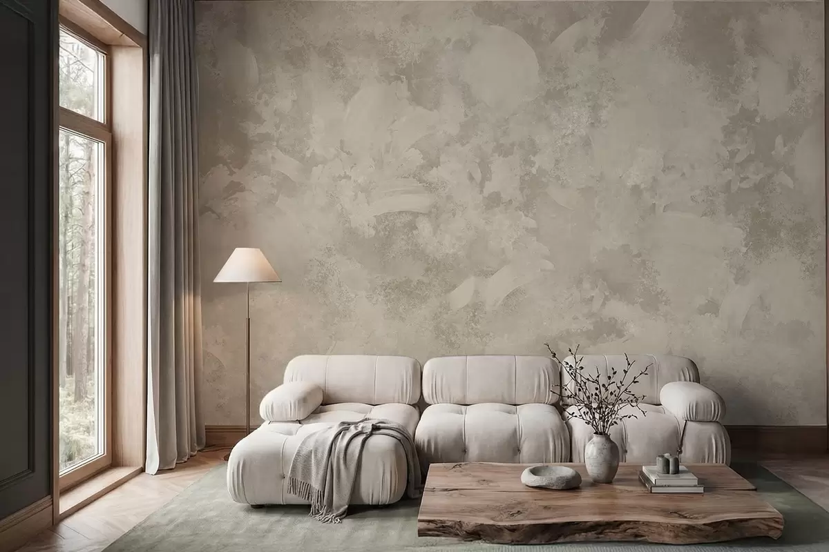 Fotobehang Minimalistische abstracte penseeltextuur in beige tinten N° w05160