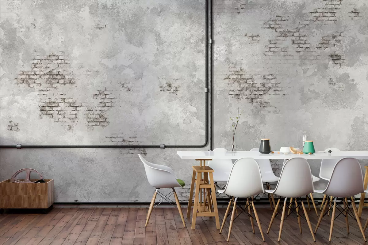 Fotobehang Grungestijl pleisterstructuur met zichtbare baksteenfragmenten N° w05161