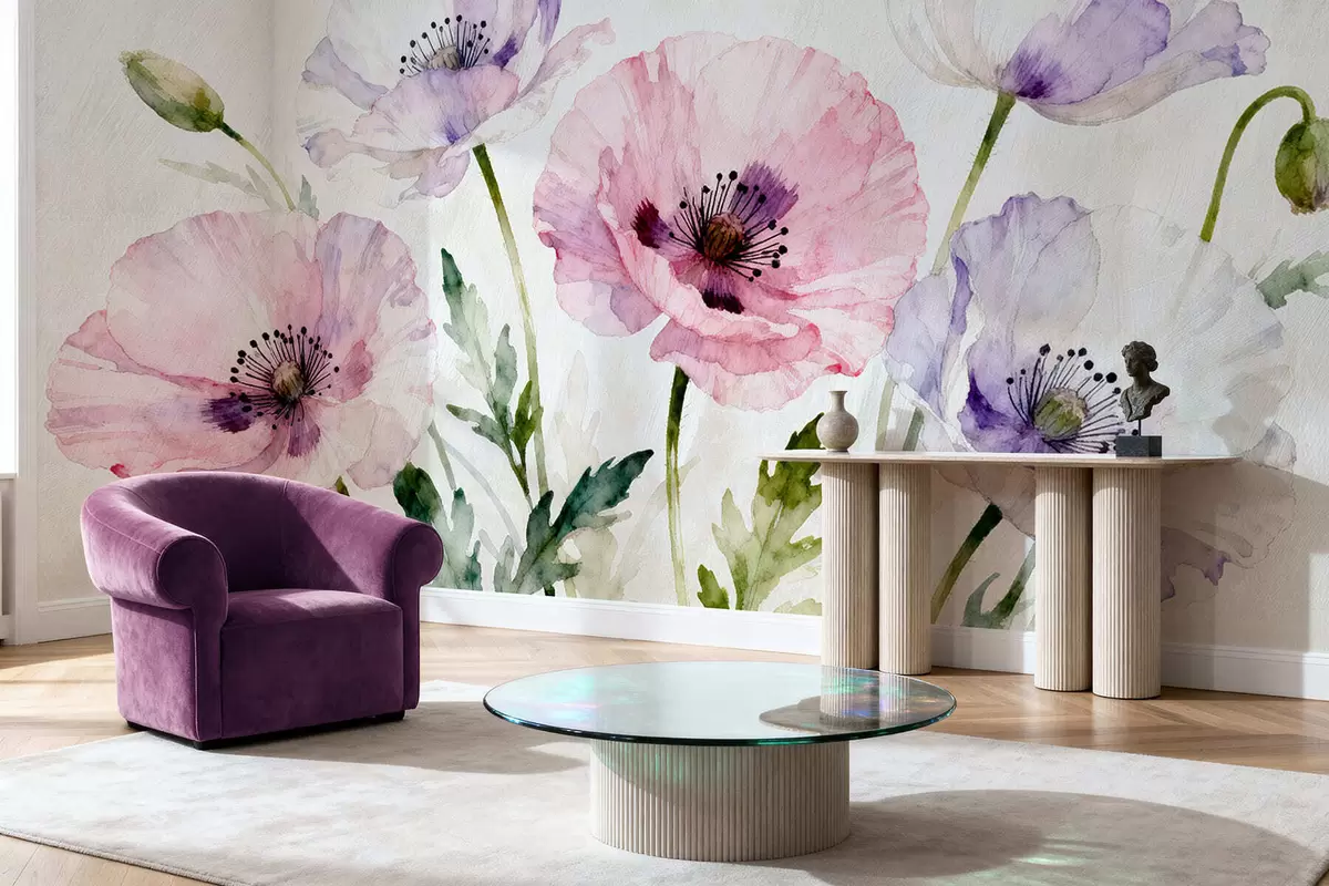 Fotobehang Aquarel klaprozen N° w05174