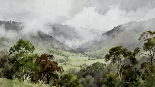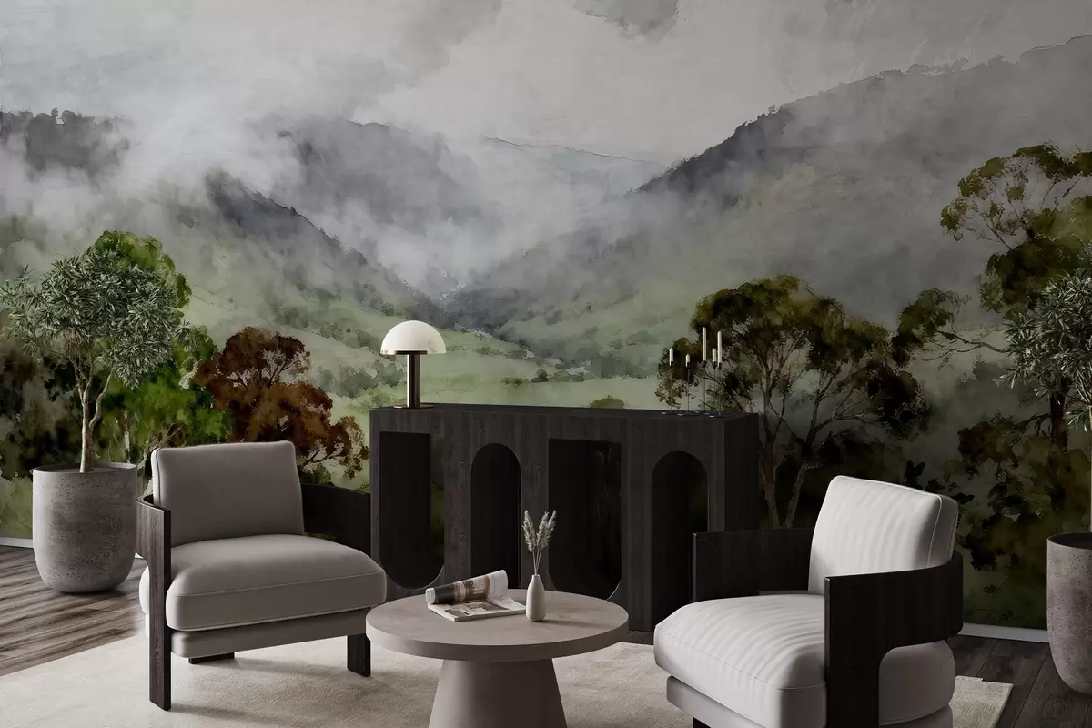 Fotobehang Geschilderd landschap in de mist N° w05185