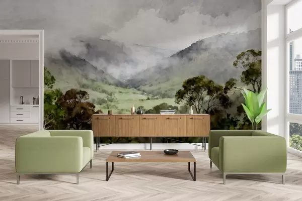 Fotobehang Geschilderd landschap in de mist N° w05185