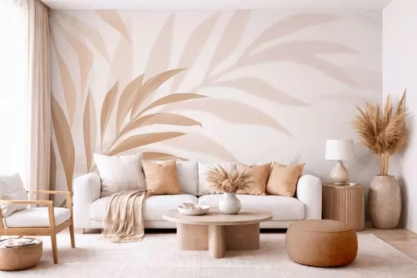 Fotobehang grote gebogen palmbladeren in beige en bruine tinten N° w05211