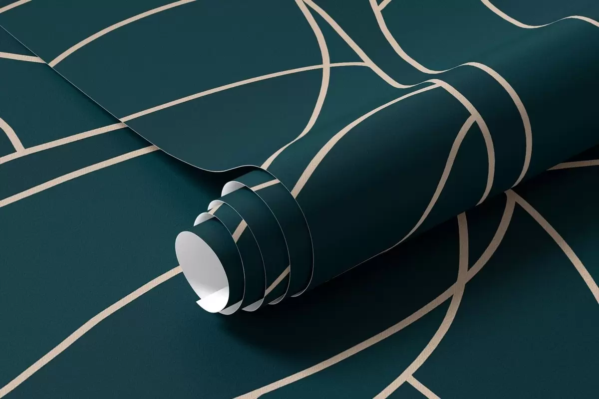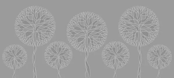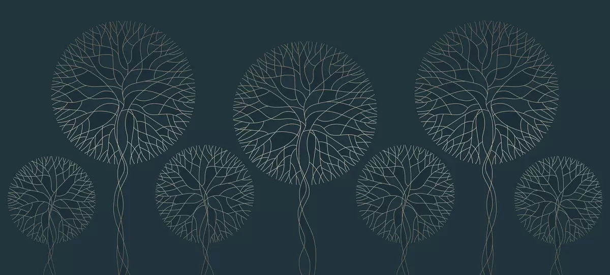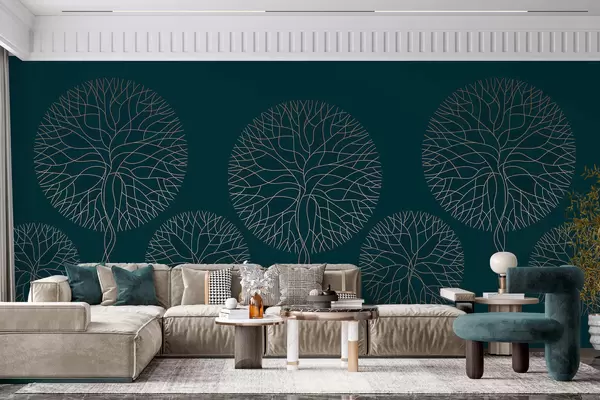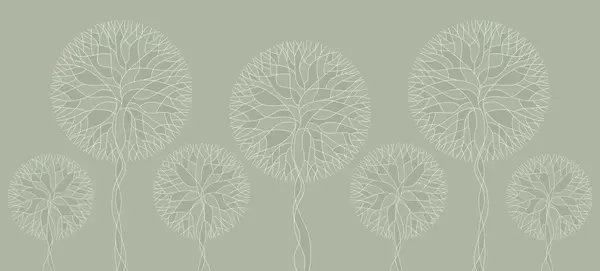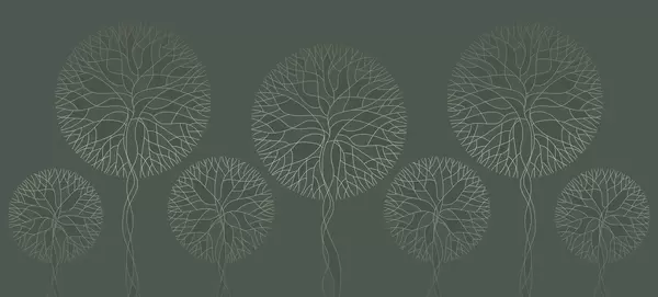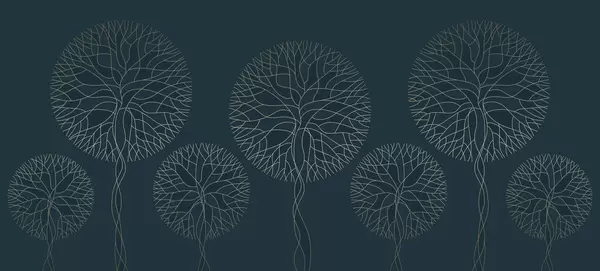 Fotobehang Fantastische lineaire bomen met weelderige kronen in elegante donkere smaragdgroene tinten N° w05213
