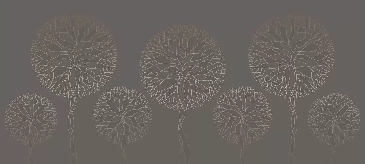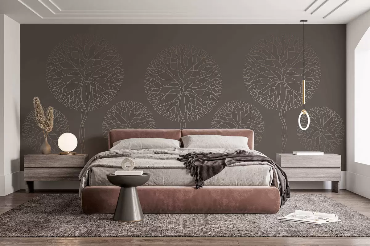 Fotobehang Fantastische lineaire bomen met weelderige kronen in elegante mokka-tinten N° w05213v1