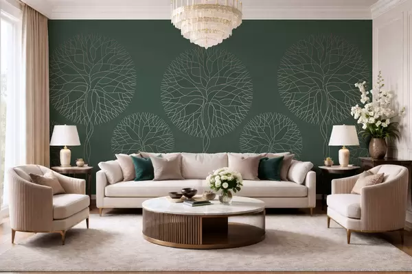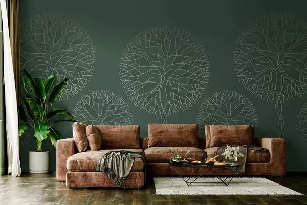 Fotobehang Fantastische lineaire bomen met weelderige kronen in elegante donkergroene tinten N° w05213v2