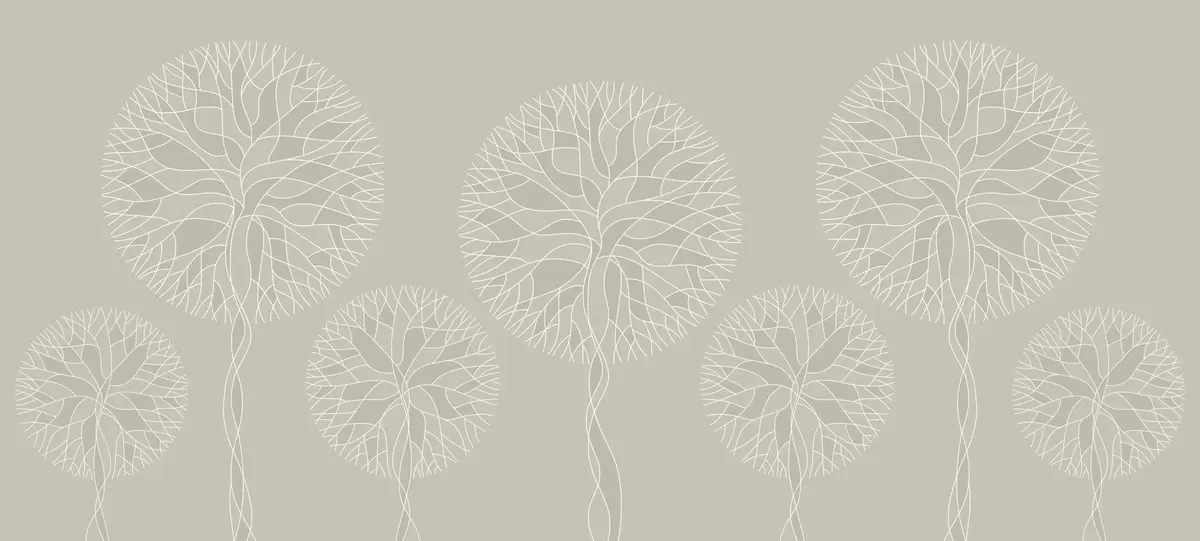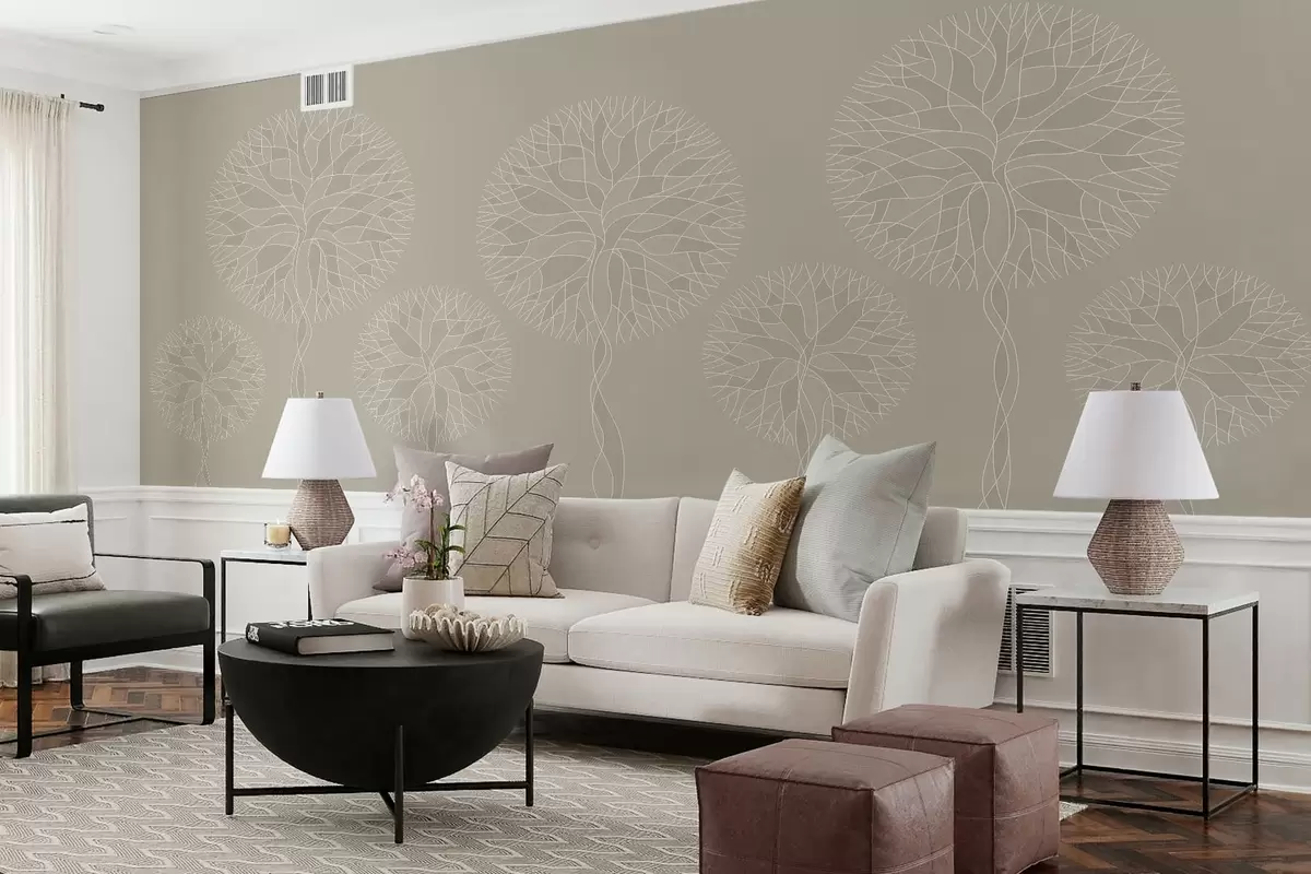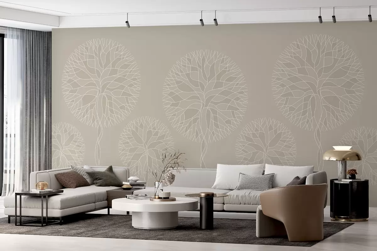Fotobehang Fantastische lineaire bomen met weelderige kronen in beigetinten N° w05213v3