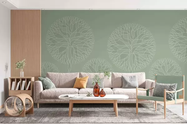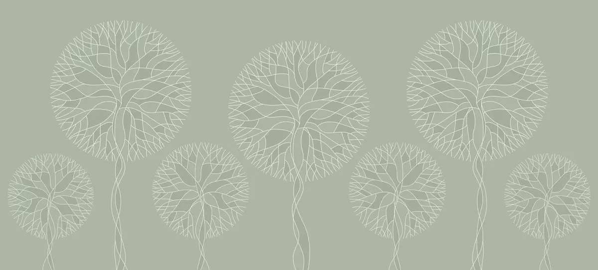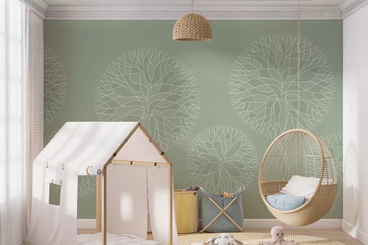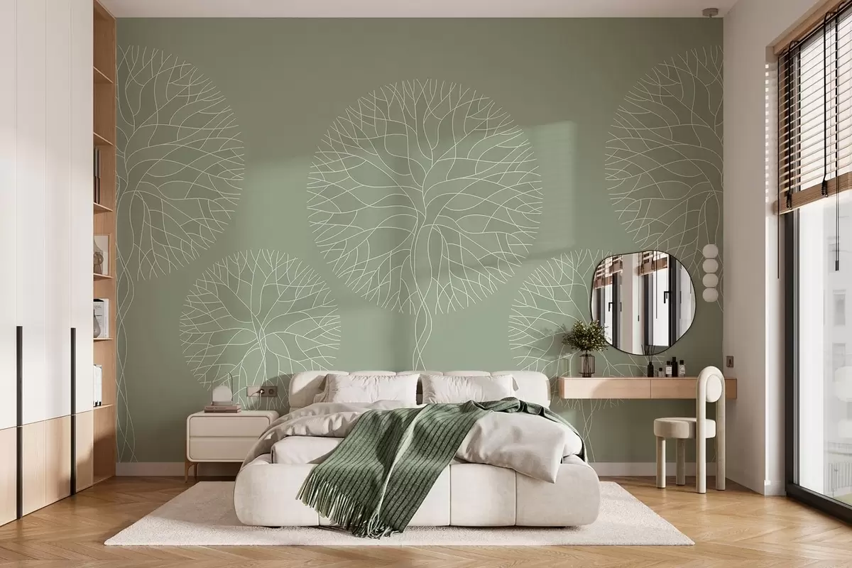 Fotobehang Fantastische lineaire bomen met weelderige kronen in lichtgroene tinten N° w05213v6