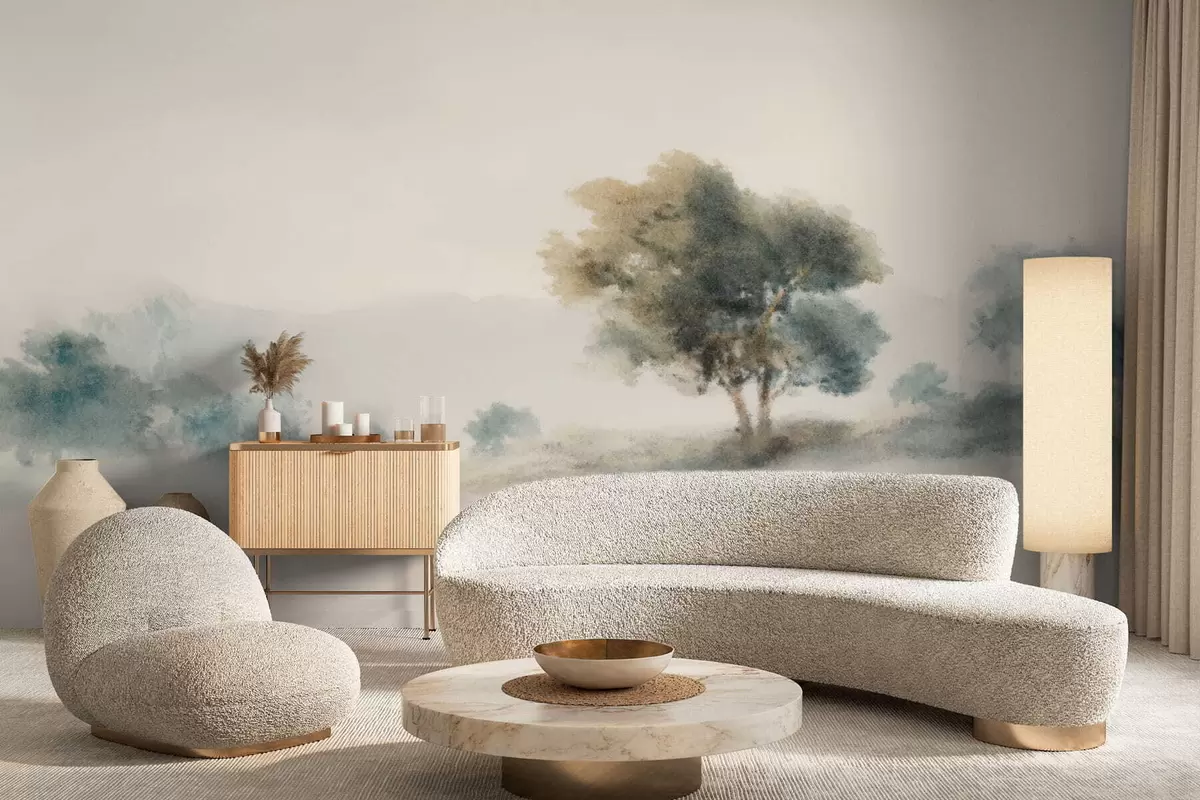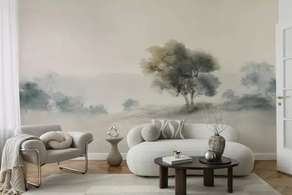 Fotobehang Rustig landschap met een boom en zachte, vage vormen N° w05223v1