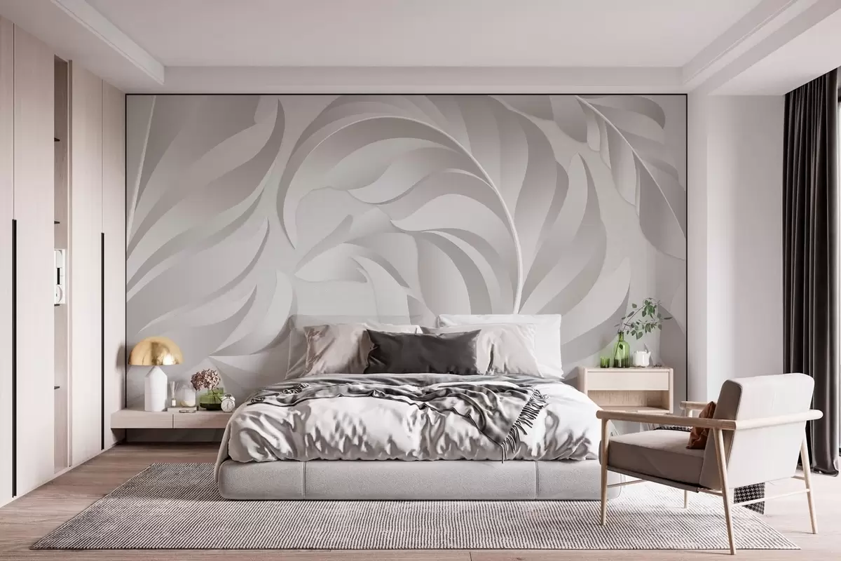 Fotobehang grote gevederde veren in parelmoerachtige tinten N° w05231v2