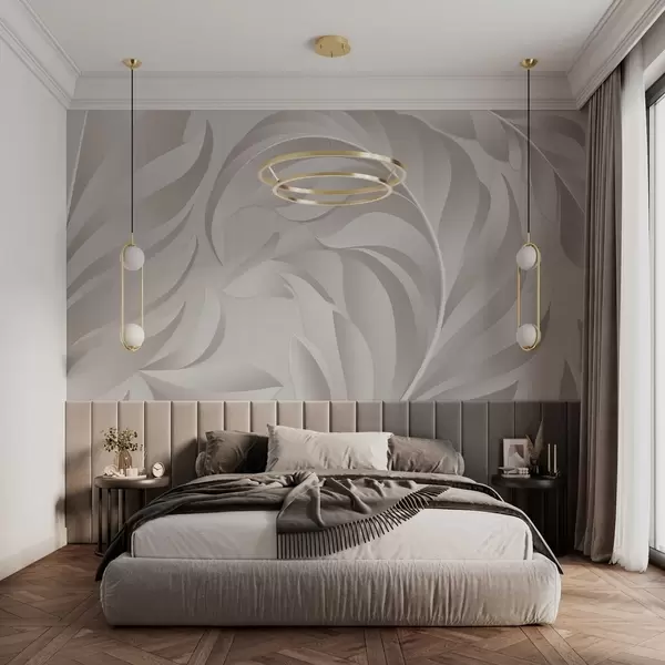 Fotobehang grote gevederde veren in parelmoerachtige tinten N° w05231v2