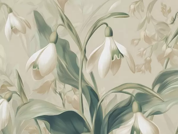 Fotobehang bloeiende sneeuwklokjes op een beige achtergrond N° w05234
