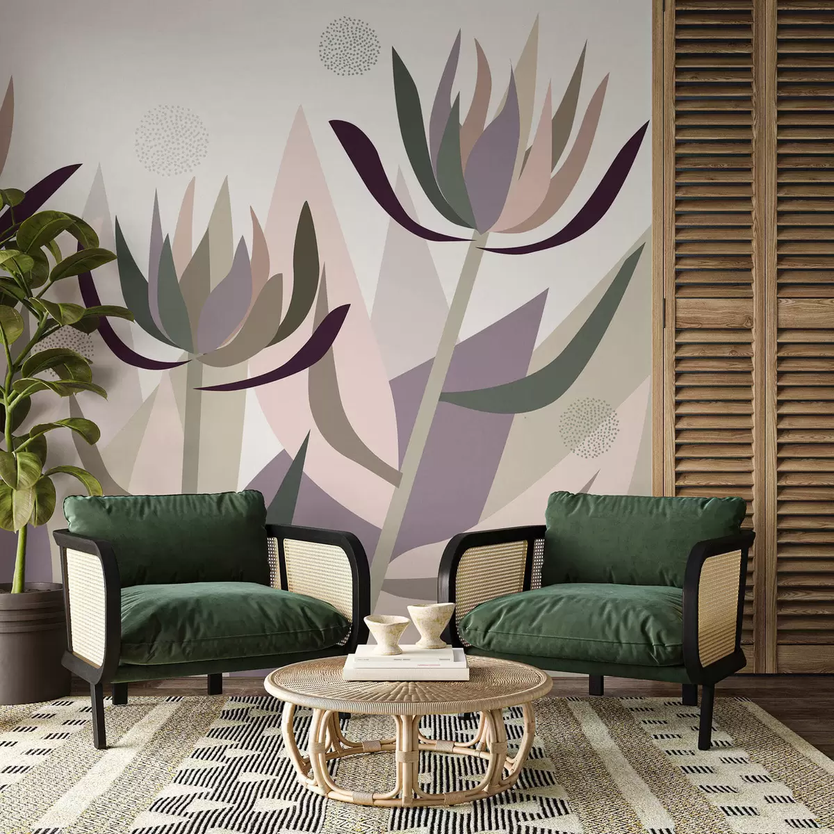 Fotobehang gestileerde proteabloemen in primitieve stijl N° w05236
