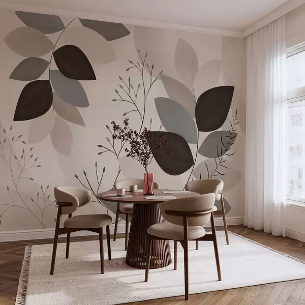 Fotobehang bladeren en grassen in beige, grijze en bruine tinten N° w05237