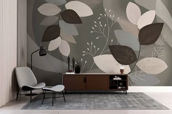 Fotobehang bladeren en grassen in donkere tinten N° w05237v1
