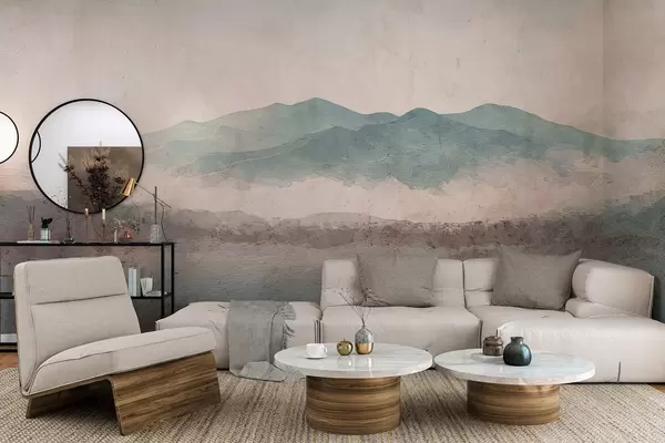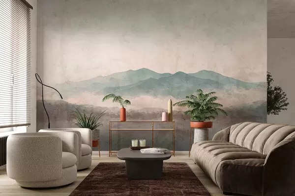 Fotobehang Grunge geschilderd berglandschap N° w05241