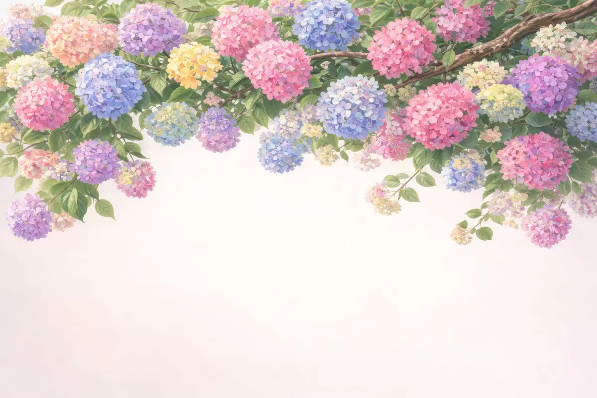 Fotobehang Geschilderde hortensia's hangen naar beneden N° w05250